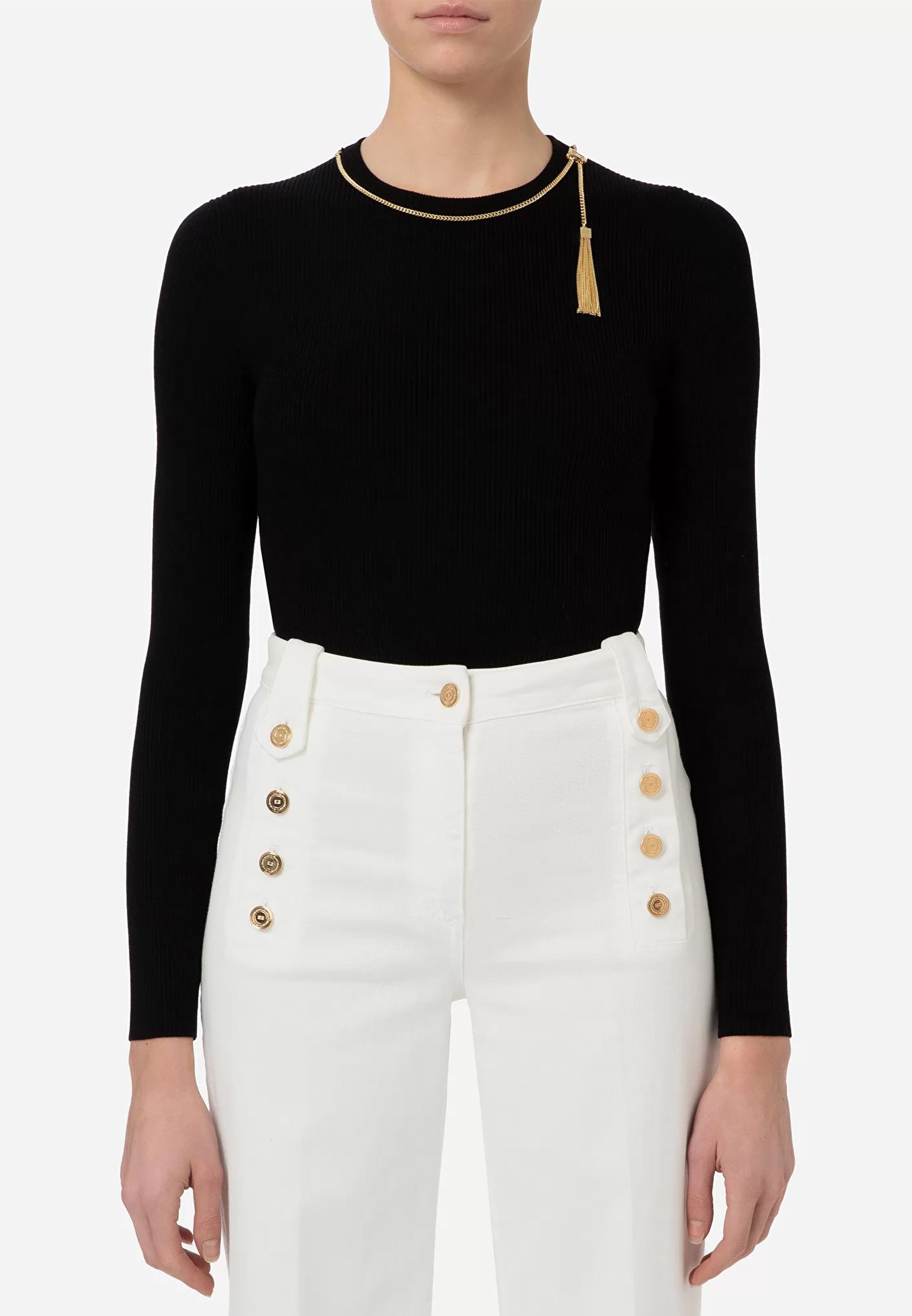 Elisabetta Franchi® Tassel Detailed Crewneck Ribbed Top